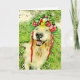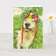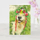 Mande um pouco de felicidade para alguém ouro com este cartão de saudação fofo! Design apresenta uma renderização de aquarela de um cão recuperador de ouros, que está vestindo uma coroa de flores com fitas vermelhas. O texto personalizável do dentro diz, "Desejando Seu Amor e Felicidade."