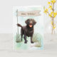 Com suas nítidas curvas e postura confiante, o Curly Coated Retriever adiciona um talento de na moda a este cartão de aniversário de aquarela. Perfeito para alguém que aprecia um companheiro leal com ambos os cérebros e um pouco de salto.