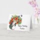 O ouriço branco com grande buquê de papoilas e margaridas, e borboletas azuis trazem desejos de aniversário... Texto personalizável para uma mensagem verdadeiramente personalizada