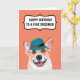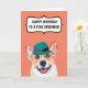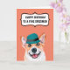 Um design divertido e atraente de um cão Pembroke Welsh Corgi vestindo um chapéu azul teal estilo vintage contra uma cor de fundo da sua escolha que tem uma bolha de fala com as palavras, feliz aniversário para um belo espécime! O dentro lê, que você continue amadurecendo como um bom vinho! Ideal para homens e mulheres que são amantes de cães.