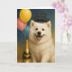 Celebre o Ano Novo com charme e um grande sorriso! Este cartão alegre de Ano Novo com o cão esquimó americano apresenta um filhote branco e fofinho de cão esquimó americano cercado por detalhes festivos para dar as boas-vindas ao ano que está por vir. Com seu design brilhante e alegre, este cartão captura perfeitamente o espírito de novos começos, felicidade e esperança.
