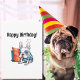 Cartão Cachorro francês bonitinho, animal vestido, Aniver