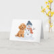 Cartão Cachorro Goldendoodle de Inverno Homem de Neve Fof