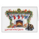 A frente deste cartão de saudação de Natal tem uma imagem de um belo cão malinois belga deitado num cobertor em frente a uma lareira decorada, esperando expectativa por Papai Noel. O texto vermelho no fundo diz "Esperando por Papais noeis". O texto é personalizável, assim como todo o texto dentro, então você pode fazê-lo dizer o que quiser. Bonita! Veja mais imagens de Sheltie, juntamente com dezenas de outros produtos da raça canina, no Dog Village.