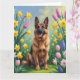 Cartão Cachorro Pastor Alemão Pintura de Flores de Primav