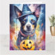 Cartão Cachorro Pastor Azul no Halloween com Abóboras Ass