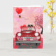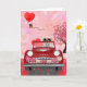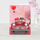 Cartão Cachorro Retriever Dourado em Carro com Corações n