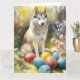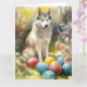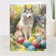 Cartão Cachorro Siberiano com Feriado de Ovos de Páscoa