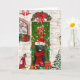 Cachorro Terra Nova Natal sentado fora de casa decorada com coroa de Natal, árvore de Natal é uma ideia de presente de Natal perfeito para amantes de cães.