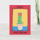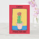 Diga um feliz aniversário com este cartão fofo. Ele tem um desenho de arte ingênuo de um cacto de bola vermelha, e pode ser personalizado com seu nome e suas palavras. O cacto está em um pote de flores bege-pinho contra amarelo e azul, e o fundo é vermelho. Você pode personalizar o cartão com seu próprio dentro de mensagem ou deixar o vazio. O trabalho de arte é original e só está disponível em The Art of Being Beth no Zazzle.
