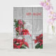 Cartão Cadeira de Natal com poinsettia na janela