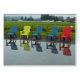 Este cartão apresenta cadeiras coloridas num dia nevado. Bom para qualquer ocasião, personalize-o com sua própria mensagem ou deixe-o vazio para escrevendo manualmente.