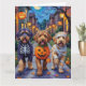 Cartão Cães Bernedoodle Trick-or-Tratating in Halloween C