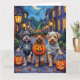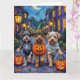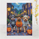 Cartão Cães de Lowchen Trick-or-Tratating Halloween