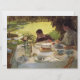 Este design apresenta uma pintura do artista italiano Giuseppe de Nittis (1846-1884). Mostra uma família tomando café da manhã em uma mesa formal no jardim. Uma mulher e um menino estão sentados na mesa, e há um assento vazio, talvez onde o marido da senhora estivesse sentado. Há patos e cisnes caminhando sobre a grama no jardim, e o menino está tentando alimentar um dos pássaros com sua comida. A família está comendo de pratos finos de porcelana e há linho branco na mesa. Há também um buquê de flores em um vaso na mesa. A arte original foi pintada por Giuseppe de Nittis em 1883.