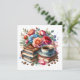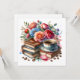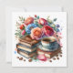 Uma ilustração bonito da aquarela aérea de uma pilha de livros antigos, uma xícara de chá ou café e flores bonito pensando em você. Você pode alterar todo o texto do cartão na área de personalização.