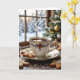 Um cartão de Natal personalizado bonito com um cobrir frontal de uma xícara de café quente com biscoitos de gengibre, uma janela olhando para um dia de inverno. Dentro, você pode deixar a mensagem que está lá ou editá-la para personalizar seu próprio cartões de natal.