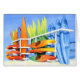 Os caiaque brilhantes, coloridos empoleiraram-se nas cremalheiras de madeira brancas na praia. :: Aguarela original por Barbara Bayer