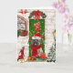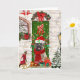Cairn Terrier cão sentado fora de casa decorada com coroa de Natal, árvore de Natal é uma ideia perfeita para presente de Natal para amantes de cães.
