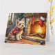 Cartão Cairn Terrier Sitting Fireplace Christmas Lights