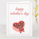 Delicie alguém especial com este adorável cartão do Dia dos Namorados com uma caixa de chocolate em forma de coração amarrada com uma fita vermelha. Um design doce e romântico, perfeito para compartilhar amor, carinho e votos sinceros no Dia dos Namorados.