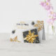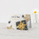 Elegante design de alta qualidade para o feriado apresentando glamourosos flocos de neve dourados brilhantes, bolas de árvore de Natal pretas e uma caixa de presente preta em um fundo cinza claro. Essa saudação festiva sazonal é perfeita para o seu pequeno negócio ou para presentear amigos e familiares.