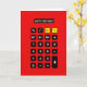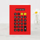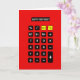 Calculadora vermelha com texto de aniversário feliz e botões pretos do teclado. O texto na tela pode ser alterado ou excluído.