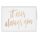 Um simples e bonito cartão de dia de casamento "Sempre foi você" de noiva a noiva ou noiva a noiva. ************************************************************************************************************** *********** Nota: O cobre não é folha de alumínio real ***********************************************************************************************************************************************************************************************************************************************************************************************************************************************************************************************************************************************************************************************************