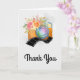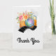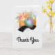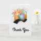 Um obrigado que você recebe com uma ilustração aquosa de uma câmera laranja com um buquê floral e uma fita de película branca e branca ondulada.