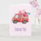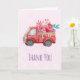 Cartões de agradecimentos com um carrinho vermelho de água. Corações de carregando e flores no fundo. Eu te amo, escrito do lado. Impressionante e adorável. Rosa claro de fundo padronizado.