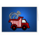 Um caminhão de lixo amarelo divertido carregando uma quantidade importante de anéis, para o seu portador de anéis favorito. Personalize o texto para dizer o que quiser.