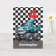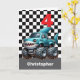 Um cartão de aniversário de 4 anos de um monstro de tubarões personalizado para rapazes. Possui um fundo de verificação preto-e-branco na frente com um lugar onde você pode personalizar facilmente a idade, se necessário. Um caminhão de monstro de tubarões azul vai deliciar todos os fãs de tubarões e monstros. Uma escolha mesquinha de um cartão de aniversário personalizado para seu filho, sobrinho, neto, etc.