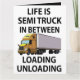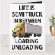 Cartão de Saudação para Caminhoneiro Caminhão Motorista de Caminhão projetado por Nisha Prabhu. Apresenta ilustração de caminhão semi-reboque com tipografia divertida "A Vida é um Caminhão Semi-reboque Entre Carregar e Descarregar". Procurando a maneira perfeita de mostrar apreço a um motorista de caminhão semi-reboque ou caminhoneiro em sua vida? Não procure mais do que este cartão de saudação único, apresentando um design ousado e atraente que celebra o trabalho árduo e a dedicação da indústria de transporte rodoviário. Seja para um aniversário, um feriado ou apenas para dizer obrigado, este cartão certamente causará um grande impacto. Com certeza será um sucesso com qualquer caminhoneiro ou entusiasta de caminhões, este cartão de saudação é a maneira perfeita de mostrar amor aos heróis desconhecidos das estradas. Compre o seu