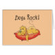 Um cão marrom bonito relaxa feliz em sua cama do filhote de cachorro e o texto preto lê "cães balança!" em nossos cães balance t-shirt, canecas, mousepads, botões, cartões, e mais!