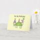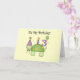 Uma tartaruga verde sorridente vestindo uma festa que carregar uma vela de aniversário nas costas e escreve no texto "É Meu Aniversário". Um balão de hélio carregar o número 3!
