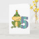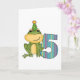 Se você ama sapos, vai adorar nossas camisetas de aniversário do 5 do Partido, roupas de cama, sacos de tote, botões de aniversário e mais o quinto aniversário especial! Possui um sapo verde vestindo um chapéu de partido pontilhado de polka verde e um grande número de striped azul 5!