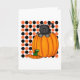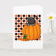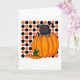 Camisetas coloridas do Halloween, canecas, cartões, adesivos, bolsas de truque ou de tratamento, ímanes e outras roupas e presentes do Halloween com um gato preto giro na abóbora e design de pontos cor laranja e preto!