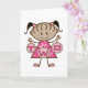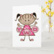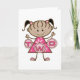 Uma adorável menina de rabo-de-porco e um vestido cor-de-rosa segura uma série de letras que soletram "DOIS" em T-shirts segundos aniversários, festas, cartas, autocolantes, bolsas e muito mais!