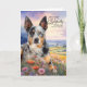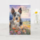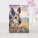 Com profunda simpatia pela perda do seu amigo. Um belo cartão de compaixão pela perda de um cão, mostrando um cão Gado de Pecuária Azul de Queensland em um colorido e florescente.