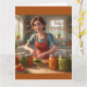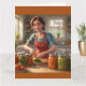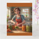Este cartão de aniversário apresenta uma mãe/mulher a enlatar vegetais do seu jardim.