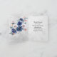 O cartão de saudação com citação inspiradora da escritura representa um desenho elegante de aquarela floral com flores azuis escuras e bagas vermelhas sobre um fundo cinza. Ele apresenta o versículo bíblico do Cântico dos Cânticos 3:4, "Achei aquele a quem ama a minha alma". A saudação é de Números 6 24-26, "O Senhor te abençoe e te guarde; O Senhor faça resplandecer o seu rosto sobre ti; ...e te dê paz". Ele pode ser personalizado e o cartão usado para várias ocasiões.