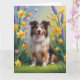 Cartão Cão Collie Áspero Pintura de Flores de Primavera