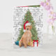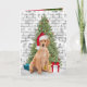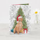 Um cão bonito, com árvore de férias e presentes. Todo texto é editável.