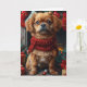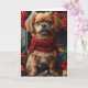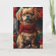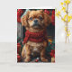 Cartão Cão Pequinês com Presentes de Natal na Lareira