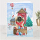 Cartão Cão Pequinês na Casa de Natal na Neve
