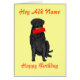 Um cão preto, guardarando um presente de aniversário, e Hey feliz aniversario de Chris (nome da mudança). Mensagem interna. Inteiramente customizável.