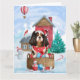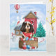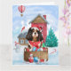 Cartão Cão Rei Cavalier em Casa de Natal com Neve