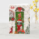 Cão São Bernardo Natal sentado fora de casa decorada com coroa de Natal, árvore de Natal é uma ideia perfeita de presente de Natal para amantes de cães.