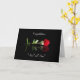 Uma bela rosa vermelha refletida em uma mesa preta dá a este cartão um toque elegante. Altere "Nome e Nome" para o nome do casal e dê a eles um cartão comemorativo parabenizando-os por se tornarem noivos.