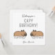 Ilustração de capivaras nadando cartão de aniversário design com expressão tipográfica: "Desejando um aniversário capivara!". A ilustração da capivara é uma arte digital original criada por @artbybiyan.